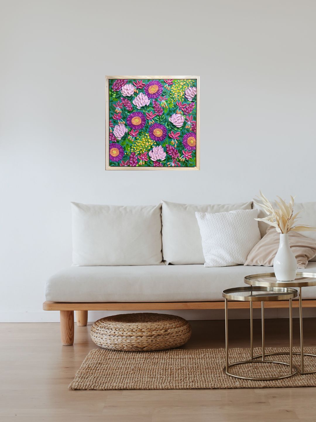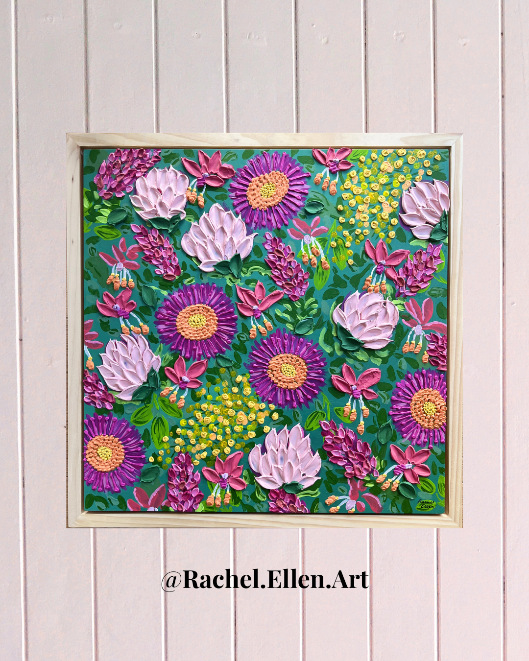 Featuring deep, earthy tones and thickly textured florals. This piece celebrates the calm, scent and shapes of the Australian Bush.